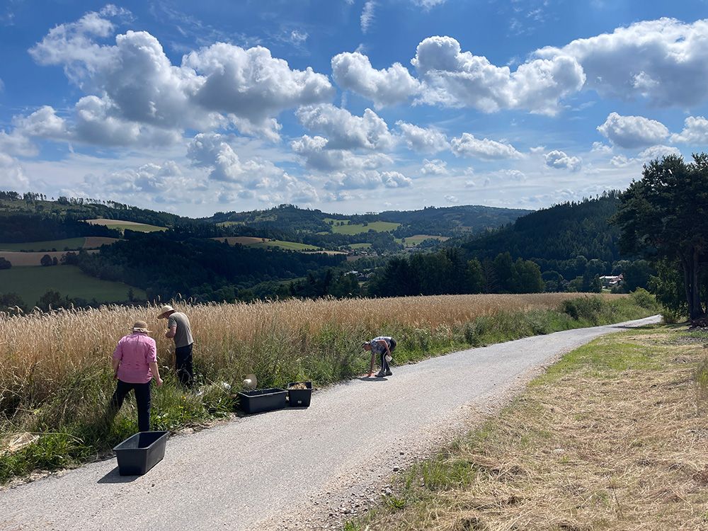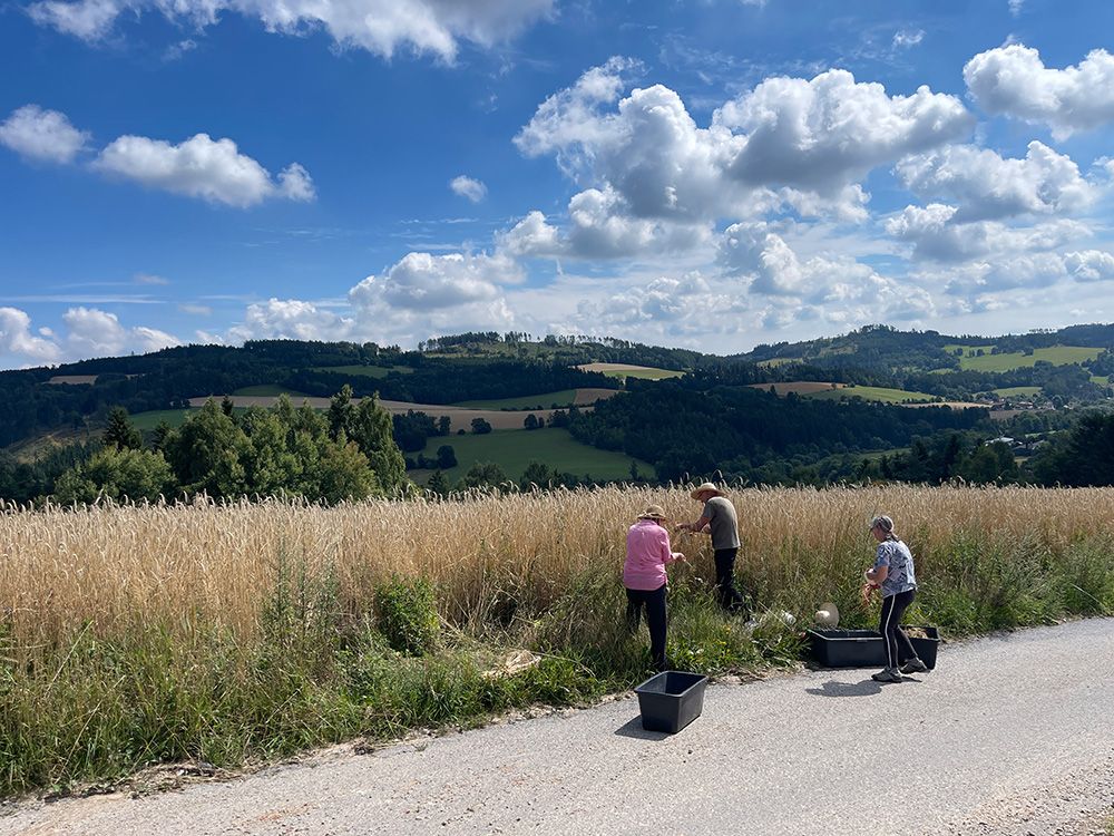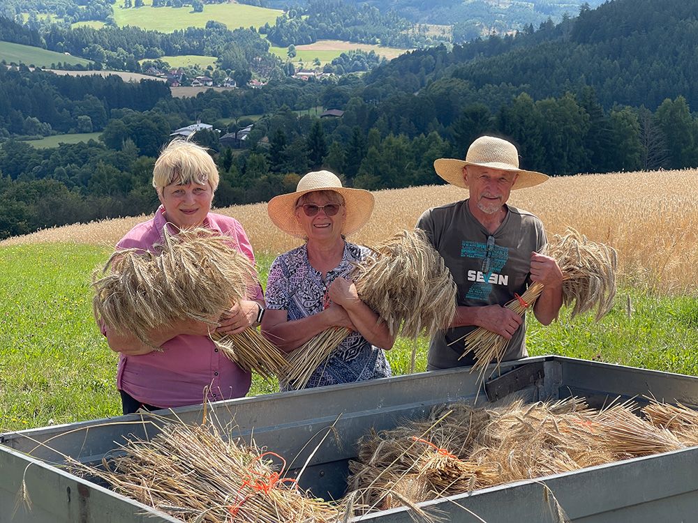 Slámu na pletení máme letos zajištěnou. Bylo to ale jen tak tak – po poslední výpravě na pole začalo pršet a kvalita slámy se tím výrazně zhoršila. Loni jsme takové štěstí neměli: déšť nás předběhl a sláma byla pro naše potřeby nepoužitelná.